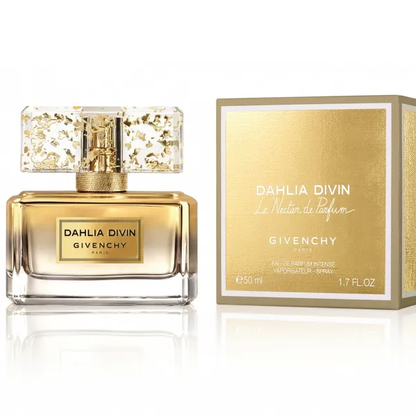 - Dahlia Divin, Le Nectar de Parfum van Givenchy, oogt inderdaad goddelijk in een gouden flacon met goudsnippers in de dop, en ruikt warm naar geurige mimosa met lichte noten van sandelhout, vanille en jasmijn. €96 (50 ml)