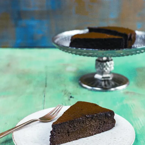 Bereiding Verwarm de oven voor tot 200 °C. Bekleed een springvorm van 24 cm met bakpapier. Smelt de chocolade in een hittebestendige kom boven een pan heet water en roer met de olijfolie glad. Haal de kom van het vuur en laat 15 minuten afkoelen. Doe de espresso en de fijngestampte kardemom erbij en roer goed. Klop de eidooiers met de fijne kristalsuiker licht en luchtig. Roer het afgekoelde chocolademengsel erdoor. Klop de eiwitten in een aparte kom tot stijve pieken. Spatel de stijve eiwitten voorzichtig door het chocolademengsel tot alles goed gemengd is. Schenk in de springvorm en bak 15 minuten. Haal uit de oven, laat afkoelen in de vorm en serveer.