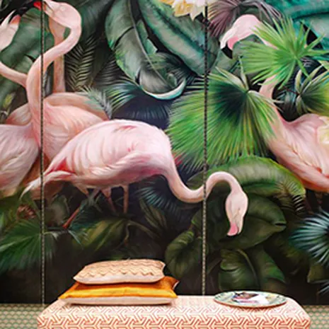 Van koraal en felroze tot fijne pastel- en poedertinten, flamingo-roze mag gezien worden. Met zijn elegante vorm en mooie veren, is dit dier een smaakmaker in je interieur. Met deze roze vogel kun je eindeloos variëren, op het behang, in een lijstje, op een kussen of opgezet; een statement piece in je interieur. Maar wel met een vleugje humor: