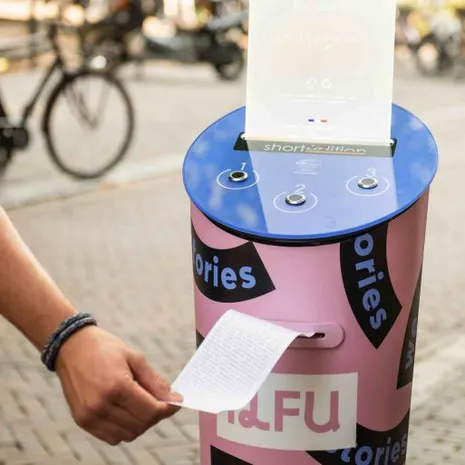 Een verhalenmachine. Misschien ken je het al vanuit Parijs of Hong Kong, maar sinds afgelopen vrijdag staat deze ook in het mooie Utrecht. Je kiest een van de 10.000 (!) short stories uit van een aantal minuten, klikt op de knop en zie daar het verhaal verschijnen. Tijdens het festival zal deze rondtrekken en kun je dus op allerlei verschillende plekken jezelf verdiepen in de literatuur die ons land te bieden heeft. Extra leuk: Schrijvers zoals Michel Faber, David Mitchell en Lionel Shriver geven lezingen én signeersessies in de grote zaal van TivoliVredenburg.