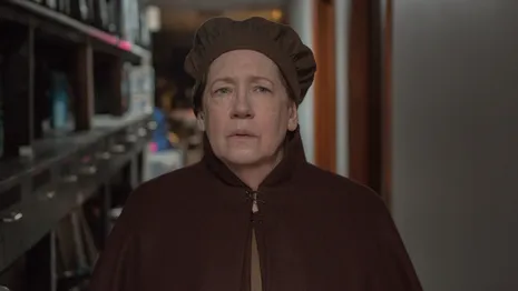 Aunt Lydia, gespeeld door Ann Dowd, is de opvoedster van de dienstmaagden in het Red Center. Een strenge, brutale en onderdrukkende vrouw. En vaak agressief en gewelddadig wanneer ze wordt uitgelokt of bedreigd door uitdagende dienstmaagden. En toch heeft ze ook een zachte kant als het op 'haar meisjes' aankomt.