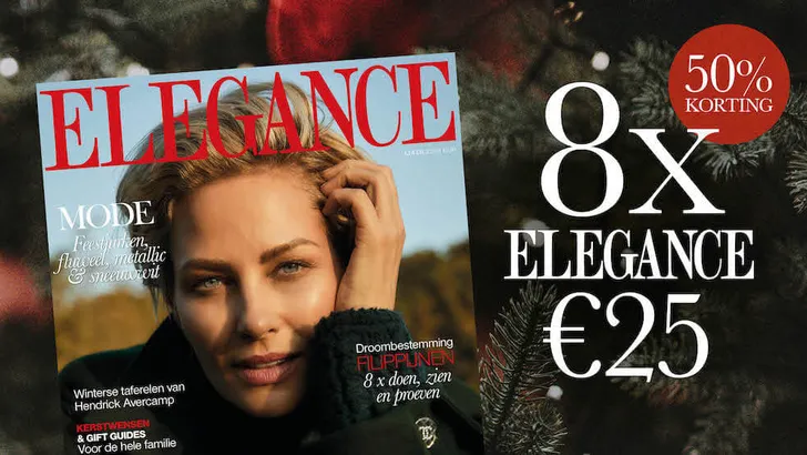 Speciaal voor de feestdagen hebben wij een waanzinnig kortingsactie: een jaar lang Elegance (8 edities) in de brievenbus voor slechts €25. Dat is maar liefst 50% korting! Gebruik maken van deze actie? Klik dan hier.