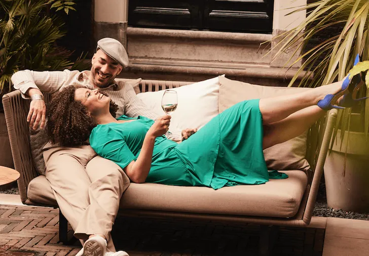 L: "Ik kon niet meer op die hakken. En die tent deed me heel erg denken aan Curaçao, het was net of ik weer even terug was. Ik vond het leuk dat Alwin ook een beetje die Curaçao-vibe had. Hij had een zelf bewuste, relaxte houding van: joh, het is allemaal prima. Heel fijn voor mij, want terug in Nederland werd ik opgeslokt door de drukte en alles wat ineens weer moest."