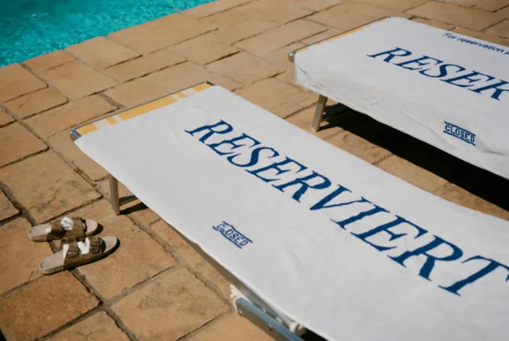 Net op tijd voor de zomer lanceert het Duitse merk Closed een collectie in samenwerking met de Londense fotograaf Paolo Zerbini. De collectie is een knipoog naar Duitse toeristen en bestaat uit witte sokken (om met sandalen te dragen), een denim nektasje met de tekst "Let's split the bill" erop geborduurd, een polo shirt, een handdoek (om 's ochtends vroeg je bedje aan het zwembad te reserveren) en een pak speelkaarten. Je shopt de items hier.