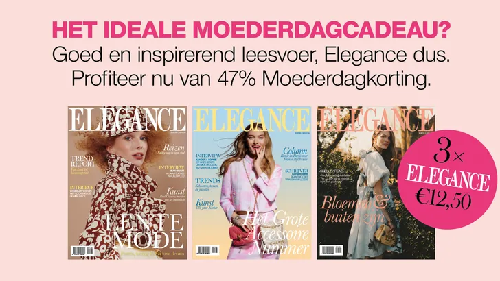 Het ideale moederdagcadeau? Wat ons betreft is dat goed en inspirerend leesvoer. Elegance dus. Zodoende bedachten we een actie die je niet aan je voorbij wilt laten gaan: sluit nu een abonnement af en ontvang drie keer Elegance voor slechts €12,50!
