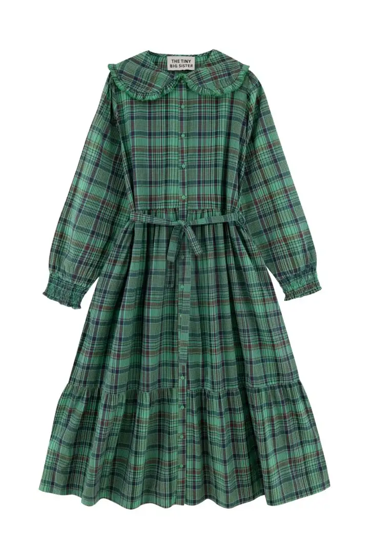 'Ik ben dol op de kleding van Tiny Big Sister, zoals deze jurken met groene ruit (€149) en vichy-print (€136) en de warme trui (€139). Ik kon niet wachten en heb ze zelf al onder de boom gelegd.'