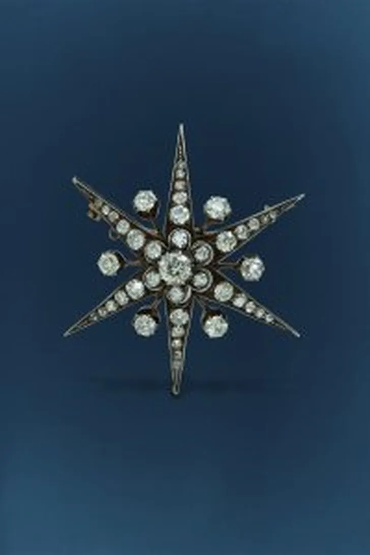 'Weer helemaal terug: de broche. Draag 'm op je jas, sjaal of wollen trui. Deze (p.o.a.) is prachtig van het nieuw ontdekte Leandra Studio.'