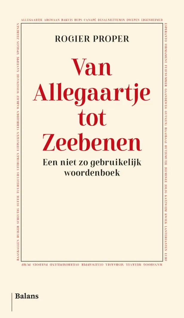 Scenarioschrijver en taalliefhebber Rogier Proper viel het op dat jonge mensen allerlei woorden die hij gebruikte, totaal niet meer begrepen. En andersom. De ontwikkeling van de taal is in een stroomversnelling, maar hoe en waardoor precies? In Van Allegaartje tot Zeebenen lees je de mooiste uit zijn verzameling. Elk woord krijgt een persoonlijke toelichting en zo wordt het een bijzonder naslagwerk vol herinneringen, melancholie en – voor sommignen – vraagtekens.