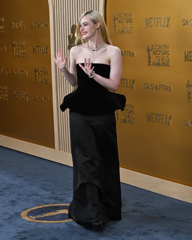 Elle Fanning schitterde op de rode loper in een mouwloze zwarte Loewe-jurk met ruches in de taille, die haar verfijnde stijl perfect benadrukte. Haar look werd gecomplementeerd met opvallende zilveren en groene sieraden van Cartier, waaronder een statement ketting, armband en ring. De combinatie van klassieke luxe en moderne flair maakte haar outfit tot een van de meest memorabele van de avond.