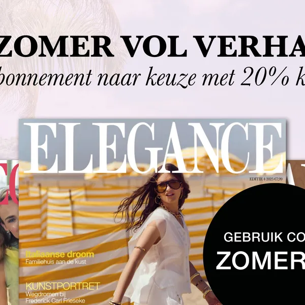 Speciaal voor deze zomer krijg je nu 20% korting op een halfjaar- of jaarabonnement met de code ZOMER20. Zo haal je Elegance voor minder in huis – boordevol inspirerende verhalen, tijdloze stijl en interviews die je bijblijven.