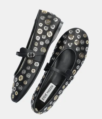 Er zijn van die vondsten waar je hart een klein sprongetje van maakt. Waar je eerst drie keer naar moet kijken, om zeker te weten dat je je niet vergist. Dat had de redactie dus met deze zwarte ballerina's van Steve Madden – te koop bij Nelson Schoenen. Met hun metallic details en charmante bandje om de wreef, lijken ze rechtstreeks uit een dure boetiek te komen. Maar niets is minder waar: ze zijn gewoon van Nelson. En – houd je vast – nu in de sale.