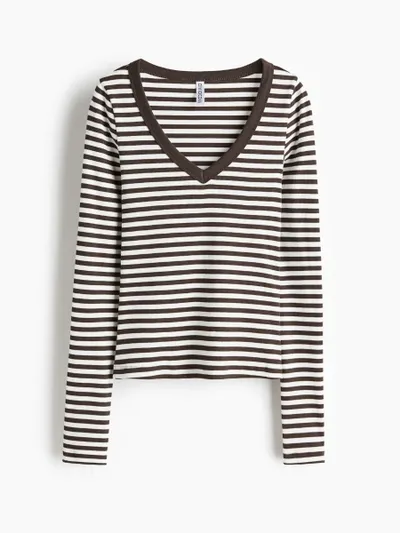 Bruin is dé trendkleur van het seizoen – warm, chic en verrassend veelzijdig. Voeg daar de tijdloze charme van strepen aan toe en je hebt een winnende combinatie. Deze bruine gestreepte top met V-hals van H&M is het soort kledingstuk dat je één keer aantrekt en daarna nooit meer wilt uitdoen.