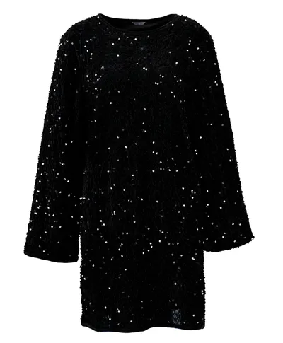 De subtiele glans van de zwarte pailletten geeft een luxe uitstraling, zonder dat het over de top wordt. Het is precies dat soort glinstering dat je doet denken aan dure avondjurken die normaal vier keer zo veel kosten.