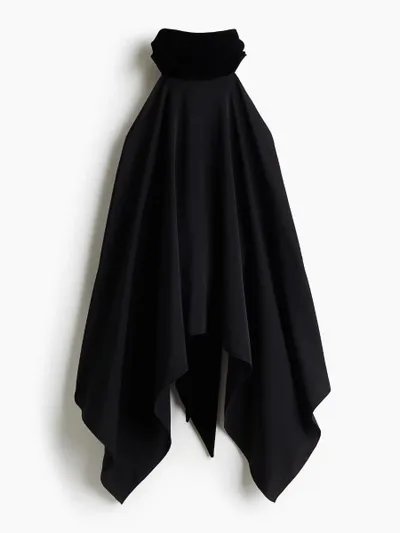 De haltersnit legt het accent op je bovenlichaam, terwijl de kraag een subtiel, bijna dramatisch effect geeft. Het is precies die combinatie die deze haltertop met sjaalkraag van H&M meer laat lijken dan een simpel bovenstuk.