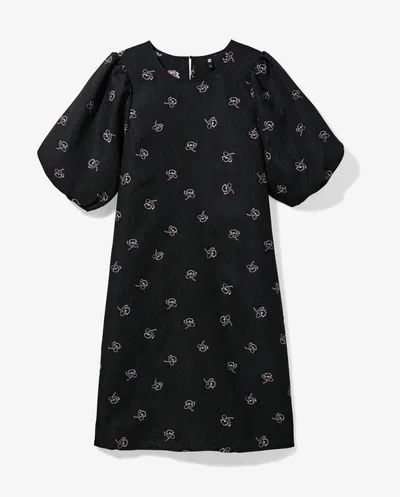 Zwart is misschien de veiligste kleur in je kast, maar deze jurk geeft er een vriendelijke draai aan. De subtiele geborduurde bloemetjes – in zachtroze tint – zorgen voor net dat beetje speelsheid. Daardoor oogt de jurk niet streng of formeel, maar juist charmant en vrouwelijk.