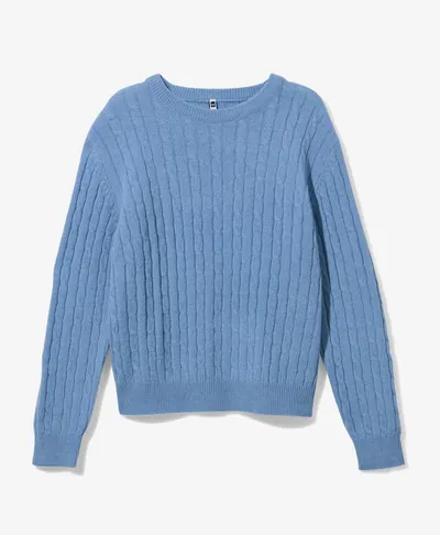 De perfecte trui vinden is meestal een zoektocht vol twijfels: te dun, te kriebelig, te tuttig of te duur. Maar soms duikt er zomaar een verrassende favoriet op, precies uit de hoek waar je 'm niet verwacht. Deze kabeltrui van HEMA voor €39,99, in een zachte blauwe tint die iedereen staat, blijkt zo'n onverwachte publiekslieveling. En eerlijk, dat is niet moeilijk te verklaren zodra je 'm van dichtbij bekijkt.