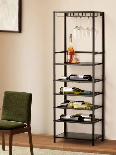 Deze kast is precies het soort meubel dat je ruimte meteen karakter geeft. Het zwarte metalen frame heeft een tijdloze uitstraling die moeiteloos past bij zowel moderne als klassieke keukens. En dan die indeling: plek voor twaalf flessen én hangers voor je mooiste wijnglazen. Het geheel oogt alsof je het bij een luxe interieurzaak hebt gehaald, maar niemand hoeft te weten dat jij slechts € 29,95 kwijt was!