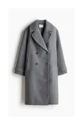 Deze jas is gemaakt van een geweven kwaliteit waarin wol is verwerkt. Hij valt knielang, heeft een klassieke reverskraag, dubbele knoopsluiting en chique paspelzakken voor. Onder aan de mouwen zit een subtiel bandje met knoop, en achter heeft de jas een split voor extra bewegingsvrijheid.