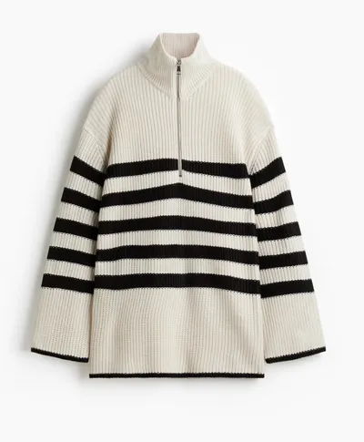 Wat deze trui zo aantrekkelijk maakt, is dat hij zowel klassiek als modern aanvoelt. De zwarte en crèmekleurige strepen zijn tijdloos, maar door de grove structuur krijgt de trui iets speels. Je combineert hem moeiteloos met een spijkerbroek, een wijde pantalon of een rok. Zelfs thuis op de bank straalt hij net genoeg stijl uit om je goed te voelen zonder moeite te doen. Deze veelzijdigheid verklaard waarom hij zo snel wordt opgepakt in de sale.