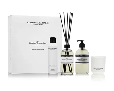 De geur No.12 Objets d’Amsterdam is inmiddels bijna iconisch te noemen. Fris, schoon, sprankelend en toch warm. Het soort geur dat iedereen herkent maar niemand precies kan omschrijven. In deze set komt die geur volledig tot zijn recht. De douche mousse voelt rijk aan en verandert een gewone ochtend plots in een klein ritueel. De handzeep maakt je handen schoon zonder droog aan te voelen, en de geurstokjes geven elke kamer net dat vleugje rust waar je thuis zo naar verlangt.