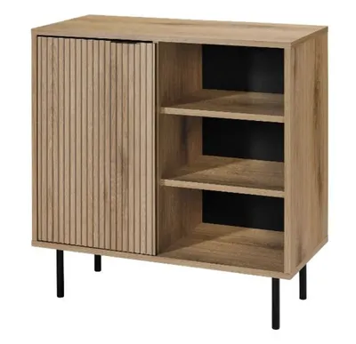 De combinatie van de gesloten deur en de drie open vakken met dit dressoir ontzettend praktisch. Achter de deur kun je alles kwijt dat je liever wilt zien. De open vlakken zijn ideaal voor boeken, mandjes, sfeervolle accessoires of dat ene mooie vaasje dat altijd te weinig aandacht kreeg. Functioneel én decoratief dus, en dat voor een bedrag waar je normaal nog geen avondje uit van kunt betalen.