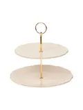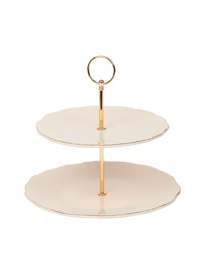 Deze tweelaagse etagère heeft een klassieke uitstraling, met twee porseleinen borden die stevig in het midden worden gedragen door een metalen handvat. Het ontwerp past eigenlijk overal bij en is chic genoeg om dat gevoel van feest en luxe te geven. Ideaal voor de decembermaand, wanneer alles net even gezelliger mag. Zet ’m op tafel, vul ’m met lekkers en je hebt meteen een pronkstuk dat de rest van de avond alle aandacht trekt.