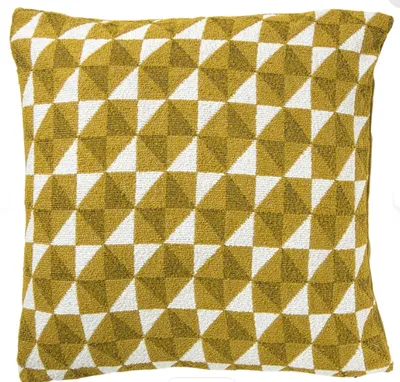 Durf te combineren. Waar we voorheen kozen voor veilig toon-op-toon, draait de nieuwe esthetiek om onverwachte kleurcombinaties. Dit kussen met grafische print laat zien hoe prachtig diep, warm mosterdgeel contrasteert met het zachte 'blush' roze van de strik. Het geel brengt de energie en de zon in huis, terwijl het roze zorgt voor zachtheid en balans. Dit duo bewijst dat botsende kleuren juist voor harmonie kunnen zorgen.