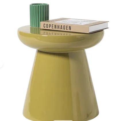 Matte afwerkingen hebben jarenlang de boventoon gevoerd, maar hoogglans is terug van weggeweest. Deze okergele bijzettafel met zijn 'wet look' afwerking is de perfecte tegenhanger van de zachte texturen in de kamer. Door een glanzend, hard materiaal (het oogt als keramiek!) te mixen met aaibare stoffen zoals fluweel en linnen, creëer je diepte in je interieur. Het reflecteert het licht en werkt als een sieraad voor je woonkamer.