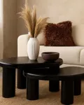 Organische meubels zijn niet meer weg te denken uit hedendaagse interieurs. Ze brengen rust, maar voorkomen dat een ruimte saai of voorspelbaar wordt. Deze zwarte salontafelset laat zien hoe krachtig zo’n vorm kan zijn. De tafels lijken bijna vanzelf in elkaar over te lopen, waardoor ze samen een mooi geheel vormen, maar ook afzonderlijk sterk staan.