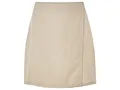 Wat deze rok direct aantrekkelijk maakt, is de linnenlook. Licht, zomers en verzorgd, maar zonder het kwetsbare karakter dat echt linnen soms heeft. Je hoeft niet bang te zijn voor diepe kreukels of een stijve pasvorm. De stof valt soepel en voelt prettig aan op de huid, waardoor je ‘m de hele dag door wilt dragen. De zachte beige tint zorgt voor een rustige basis die zich moeiteloos laat combineren met alles wat al in je kast hangt.