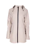 Het model is specifiek ontworpen met oog voor vrouwelijke vormen (hij is er ook in grotere maten). De jas valt mooi over de heupen en heeft een capuchon die je beschermt tegen plensbuien. De ritssluiting en de zakken zijn subtiel verwerkt, waardoor het geheel rustig oogt.