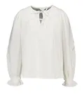 Als je de laatste tijd een beetje hebt opgelet in de modewereld dan weet je dat de romantische stijl helemaal terug is van weggeweest. We zien overal zachte stoffen en verfijnde details. Deze blouse speelt daar meesterlijk op in. Het ontwerp kenmerkt zich door de prachtige striksluitingen aan de hals. Je kunt ze nonchalant los laten hangen voor een speels effect of juist netjes vastknopen voor een meer geklede uitstraling. Daarnaast zijn de mouwen voorzien van subtiel borduurwerk dat doet denken aan de kostbare broderie anglaise techniek. De elastische boorden aan de polsen zorgen voor een mooi pofeffect wat het geheel een dromerige en vrouwelijke uitstraling geeft. Het is precies die balans tussen lief en stijlvol waar we zo van houden.
