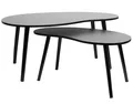 Het gaat om een set van twee zwarte bijzettafels die precies die gewilde organische vorm hebben. Ze doen denken aan kiezelstenen of wolken en dat is precies wat je nu overal ziet bij de dure woonwinkels. De tafels zijn uitgevoerd in een chique zwarte kleur waardoor ze in vrijwel elk interieur passen. Of je nu een moderne en industriële inrichting hebt of juist houdt van een lichte en Scandinavische stijl. Zwart zorgt altijd voor een mooi contrast en een volwassen uitstraling. Doordat het een set is van twee verschillende hoogtes kun je er alle kanten mee op. Schuif ze speels onder elkaar voor een gelaagd effect in het midden van de kamer of zet ze los van elkaar neer naast de bank en je favoriete leesstoel.