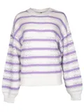 Het mooie aan ajour-breisel is dat het een romantische textuur toevoegt aan je outfit zonder dat het te zwaar wordt. De combinatie met het horizontale streeppatroon maakt het geheel af. Het is een kledingstuk dat textuur geeft aan je verschijning!