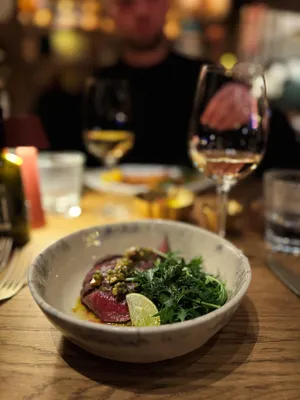 Het personeel was opvallend vriendelijk en wist precies te vertellen wat er op de uitgebreide dinerkaart stond. We kozen om te delen en begonnen met een beef tataki met ponzu en chimichurri, en gegrilde gamba's met ananas en honing-geglaceerde worteltjes. Als hoofdgerecht volgden een perfecte ribeye en een heerlijke redfish, die geserveerd werd op een bedje van misomousse met cajunboter. Elke gang werd begeleid door een paar uitstekende, goed passende wijnen.