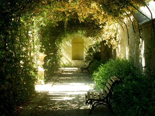 De tuin bestaat uit drie delen, elk met een eigen sfeer. Je begint in een formeel, bijna koninklijk parterre waar alles symmetrisch en strak is. Daarna wandel je door naar een dromerig, bosachtig gedeelte waar de natuur iets meer haar eigen gang mag gaan. Overal ontdek je verborgen hoekjes, romantische bankjes en mfotogenieke doorkijkjes. Het is de ideale plek om even te ontsnappen aan de drukte en je telefoon te vullen met beelden waar je volgers jaloers op zullen zijn.