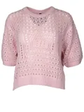 Wat deze trui direct een prachtige uitstraling geeft, is het opengewerkte breisel. Dit gatenpatroon is au moment een enorme trend in de modewereld. Het doet denken aan handgemaakt haakwerk, wat een romantische sfeertje geeft. En dan de kleur... Licht roze straalt een bepaalde rust uit, waardoor het net zo mooi staat op een stoere spijkerbroek als op een nette rok. Het is echt een tijdloze kleur die bewijst dat zachtheid dit seizoen ontzettend krachtig kan zijn.