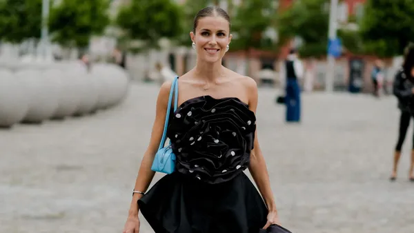 Het geheim van een sterke basis is dat je er alle kanten mee op kunt. Dit jurkje leent zich perfect voor de high-low stylingtruc waar modevrouwen bij zweren: het mixen van een budgetvriendelijke foundation met luxe accessoires.