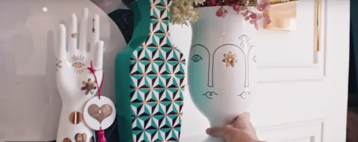 Onze eerste favoriet uit de collectie is de vaas met gezichten. Zet een mooie bos bloemen in de vaas die het haar vormen. Een echte eyecatcher voor iedere ruimte.