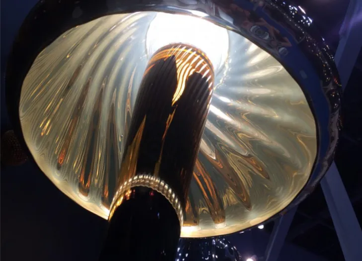 One of a kind kunstwerken gemaakt van glas, dat is wat Arnout Visser maakt in samenwerking met de beste Boheemse glasblazers. Zijn presentatie bestaat uit een serie torenhoge glazen vloerlampen, genaamd Big Mushrooms.